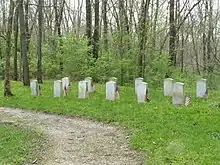 A series of limestone columns known as the "Seven Pillars of the Mississinewa" stands on the north side of the river about three miles (5 km) southeast of Peru in Miami County.[3]