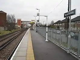 Mitcham Eastfields (initially known as Eastfields during planning and construction)[3] is a railway station in London, United Kingdom, which opened on 2 June 2008.[4] The infill station is located at Eastfields Road level crossing,[3] in an area previously poorly served by public transport. The nearest station was Mitcham Junction, which along with Mitcham tram stop, was over 1 mile (1.6 km) from the district.[5] It is in fare zone 3.[6]
