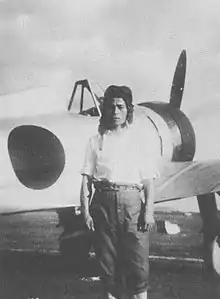 Mori poses in front of a Mitsubishi A5M fighter while serving with the 12th Air Group in China in 1938 or 1939