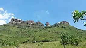 The uKhahlamba-Drakensberg Park is a protected area in the KwaZulu-Natal province of South Africa, covering 2,428.13 km2 (938 sq mi), and is part of the Maloti-Drakensberg Park, a World Heritage Site.[2] The park includes Royal Natal National Park, a provincial park, and covers part of the Drakensberg, an escarpment formation with the highest elevations in southern Africa.