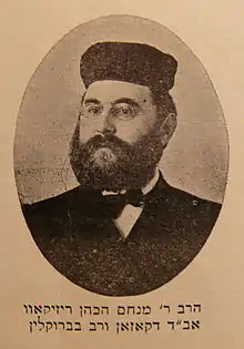 Mnachem (Mendel) HaKohen Risikoff (1866–July 28, 1960), was an orthodox rabbi in Russia and the United States, and a prolific author of scholarly works, written in Hebrew.[1] Risikoff used a highly stylized and symbolic pen-name, יאמהדנונחהים, made up of the Hebrew letters of his first name, the Hebrew word for Lord, and the Tetragrammaton, one of Judaism's terms for God. It is not clear whether this pen name was used in conversation, or whether it was used only in his writings.