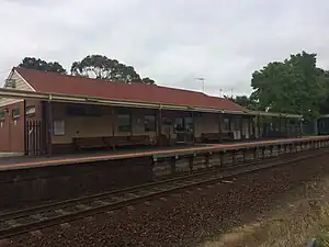 ![]() Southbound view of the station building in January 2017 | |||||||||||||||||||||||