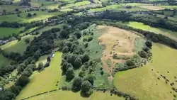 The hillfort is one of a chain of six hillforts in the Clwydian Range, which are, from north to south, Moel Hiraddug, Moel y Gaer Bodfari, Penycloddiau, Moel Arthur, Moel y Gaer Llanbedr, and Moel Fenlli.[2] Moel y Gaer Bodfari is the lowest of these hillforts, being just 200 m (656 ft) above sea level. The hill on which it stands is surrounded by lower land and is strategically situated at the confluence of the River Wheeler and the Clwyd.[3] Offa's Dyke Path passes along the foot of the hill.