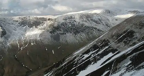 The Moffat Hills[1] are a range of hills in the Southern Uplands of Scotland. They form a roughly triangular shape with a west facing side, a north facing side, and a south-east facing side. It is 17 kilometres from east to west across this triangle and some 16 kilometres north to south. The highest point is White Coomb at 821 m (2694 ft). The town of Moffat lies just south of the Moffat hills and along with Tweedsmuir, at the northern extremity, is the only centre of population around these hills. In some older maps, the northern part of the Moffat Hills is called the Tweedsmuir Hills, but can also be known by the title Manor Hills.