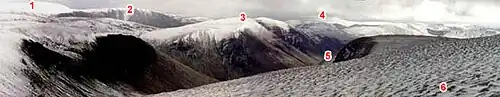 The next range of hills to the west is the Lowther hills wherein lies the source of the River Clyde.[3]