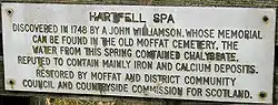 The sulphurous waters of Moffat Well were believed to have healing properties and during the Victorian era the high demand for this led to the water being piped down from the well to a specially built bath house in the town centre (now the Town Hall).