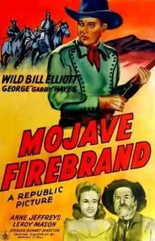Mojave Firebrand is a 1944 American Western film directed by Spencer Gordon Bennet and written by Norman S. Hall. The film stars Wild Bill Elliott, George "Gabby" Hayes, Anne Jeffreys, LeRoy Mason, Jack Ingram and Harry McKim. The film was released on March 19, 1944, by Republic Pictures.[1][2][3]