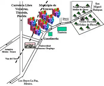 Map to Molino de Flores Nezahualcóyotl National Park, near Texcoco.