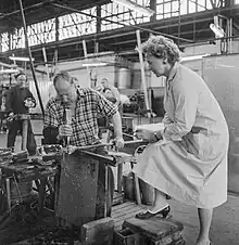 Mona Morales-Schildt was the daughter of Olallo Morales and Clary Morales, and sister of Christer Morales.[2][3] She studied at the Higher Art and Crafts School in Stockholm (Swedish: Högre Konstindustriella Skolan, a predecessor to the University of Arts, Crafts, and Design).[4] In 1936 she pursued further studies at poster artist Paul Colin's advertising and painting school in Paris.[5] She worked for Gustavsberg porcelain (1934–1938),[4] where she was an assistant to Wilhelm Kåge.[6] She then worked for the ceramics company Arabia (1938–1939), and for the department store Nordiska Kompaniet (NK, 1945–1957).[4] In 1950 Morales-Schildt and her husband visited the Venetian glass artist Paolo Venini in Murano to arrange an exhibition of his work at NK.[7] From 1958 to 1971 she worked for Kosta glassworks,[4] where she was the second woman artist to work at the firm, after Tyra Lundgren.[8]