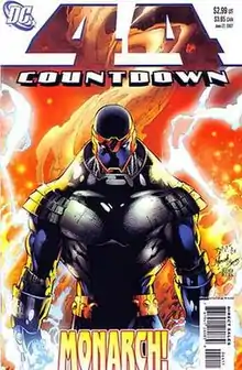 Monarch appears in the last panel of Countdown #45. He appears to be observing Forerunner. In his weekly interview on Newsarama.com, Mike Marts revealed that Countdown #44 bears a cover by Ed Benes with the Monarch armor,[4] as in the same issue Monarch manages to sway Forerunner to his side, turning her against the Monitors.