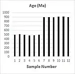 A number of spots within an age domain are selected and further dated accurately with the measurement tools by isotopic dating method.[2] The results are then analysed statistically to give an accurate age of each age domain.[2]