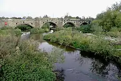 Monks Bridge is a road bridge across the River Dove between Stretton, Staffordshire, and Egginton, Derbyshire. A bridge has existed here since the early 13th century, though much of the current structure dates to the 15th century. It formerly carried traffic on what is now the A38 road but a replacement structure was built to the north in 1926. It was formerly used as a slip road but is now out of use to vehicular traffic.
