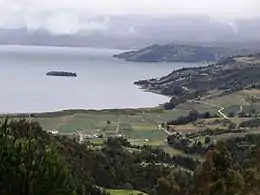 The Monster of Lake Tota is a legendary aquatic animal known in many works as: diablo ballena, lit.'devil whale'. The monster is an inhabitant of Lake Tota in present-day Colombia, according to the Muisca, who inhabited the Altiplano Cundiboyacense. The earliest reference in modern history was made by the conquistador Gonzalo Jiménez de Quesada. He described the monster as "A fish with a black head like an ox and larger than a whale" (Lucas Fernández de Piedrahita, 1676) and Antonio de Alcedo, 1788[1])). The monster was also defined as "a monstrous fish", "a black monster",[2] and even as "the Dragon" and as a "divine animal archetype" (2012).[3]