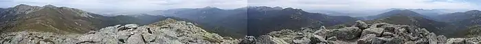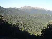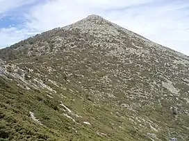 ![]() Southern slope of Montón de Trigo as seen from Cerro Minguete. The mountain, seen from the north or from the south, has a shape that alludes to its name. | |