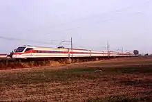The Mont Cenis was the upgrading and successor of the French Rapide Le Transalpin running since 1954 between Lyon and Milan on the same route.[2] In 1957 the TEE network was split in a northern and southern part. Centre of the southern part was Milan and it was planned to have four TEE services from and to Milan. However the Italian ALn 442-448 trains weren't available in time for the launch of the TEE network on 2 June 1957, and consequently, the Mont Cenis, operated with French RGP-825, was the only one entering service on time. The RGP-825 was replaced by the Italian ALn 442-448 diesel multiple units on 29 May 1960,[3] so the entire southern part of the TEE network was operated by Ferrovie dello Stato. This replacement wasn't an improvement at all because the ALn 442-448 trains could hardly cope, as seen before on the Brenner route (TEE Mediolanum), with the slopes in mountainous aerea's, and the average speed dropped from 85 km/h to 75 km/h.[4] In 1966 Le Catalan was introduced on the Geneva - Portbou relation and in order to create a timed connection at the crossing point Chambéry the schedule of the westbound Mont Cenis was put forward half an hour, thus creating a first-class link between Milan and Spain.[5]