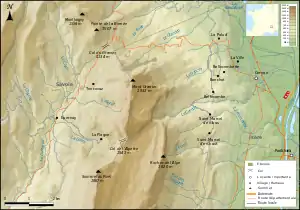 Mont Granier (1,933m) is a limestone mountain located between the départements of Savoie and Isère in France. It lies in the Chartreuse Mountains range of the French Prealps between the towns of Chapareillan and Entremont-le-Vieux. Its east face overlooks the valley of Grésivaudan and Combe de Savoie, and the north face overlooks Chambéry. At 900 meters tall, Mont Granier has one of the highest cliffs in France.