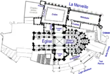 The "Merveille", located to the North of the church-abbey, contains a cloister, a dining-hall, a study room and a chaplaincy with an ideal floor plan for going from one to the other.