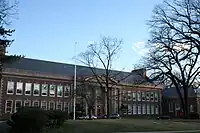 Founded in 1886, Montclair High School quickly outgrew its original location (torn down in the 1930s) on Orange Road, the site of which is now the field of Hillside School.[7] Initially, the school included just the Main Building but as time went on and the enrollment grew, the board of education allowed the high school to annex George Inness Junior High School across the street which is used for ninth-grade classes.[7][8]