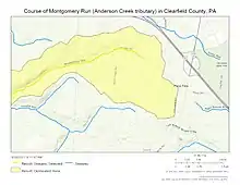 Course of Montgomery Run (Anderson Creek tributary) in Clearfield County, Pennsylvania, USA