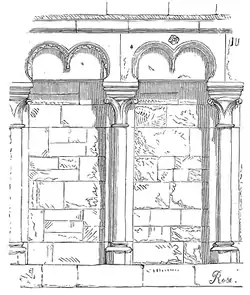 By the end of the century, the primitive buildings had been replaced; the abbot Adso (960-92)[5] set about rebuilding the ruined church in stone; it was reconsecrated in 998. The severe Carolingian—Romanesque nave contrasts with a Gothic choir illuminated by sixteenth-century stained glass windows. The abbey church retains its sixteenth-century wooden roof, reminding the visitor that not all churches were provided with stone vaulting. The Early Gothic choir is of the twelfth and thirteenth centuries.