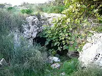 The area has been inhabited since the Paleolithic, as is shown by the discovery of about thirty dolmen burials which can be dated to the 13th to the 12th centuries BCE, of the types: gallery dolmen tomb, dolmen tumulus with rectangular cell, and pseudo-dolmen cell. At Murgia San Francesco is La Castelluccia, a settlement of the Peucetii dating back to the 6th century BCE; it flourished in the Hellenistic period and declined in the Roman period.