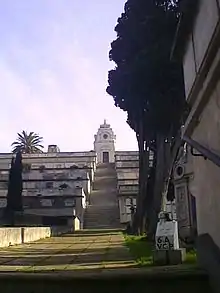 The Monumental Cemetery of Bonaria is located in Cagliari, Sardinia. In use between 1829 and 1968, this monumental cemetery originally occupied an area at the base of the hill of Bonaria, and over time expanded upwards. The main entrance is located in Piazza Cimitero, with a second entrance in Ravenna, at the Basilica of Bonaria. Several famous people were buried in Bonaria, including the canonical archaeologist Giovanni Spano, the tenor Piero Schiavazzi and General Carlo Sanna.