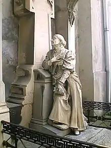 The cemetery contains many artistic memorials and burials of notable people, including the mayor of Cagliari Ottone Baccaredda, the historian Pietro Martini, the canon and archaeologist Giovanni Spano (buried in a tomb he himself designed and built, reusing archaeological remains[1]). Other interesting tombs and chapels were built between the end of the 19th and early 20th centuries by artists such as Giuseppe Sartorio, Tito Sarrocchi, Cosimo Fadda, Andrea Ugolini, Emanuele Giacobbe, Giovanni Pandiani and others, providing a wide variety of tastes and styles, from neoclassical through Realism and Symbolism to Art Nouveau.