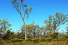 The Park provides important habitat for numerous species endemic to eastern Australia and south east Queensland, owing its species diversity to varied ecosystem types and ecotones.[3] It represents an important remnant of coastal heathland once common in the region and a refuge for the associated flora and fauna. Almost half the area of the Park is coastal and sub-coastal floodplain wet heath swamp and approximately one third coastal and sub-coastal floodplain tree swamp containing Melaleuca and Eucalyptus species in the Park's wetland areas.[4]