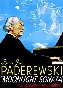 Moonlight Sonata is a 1937 British drama film directed by Lothar Mendes and written by E. M. Delafield and Edward Knoblock.[1] The film stars Ignacy Jan Paderewski, Charles Farrell, Marie Tempest, Barbara Greene and Eric Portman. The film was released on 11 February 1937, by United Artists[2][3][4] and re-released in 1943 as The Charmer (shortened).[5]