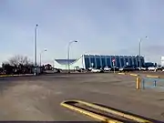 Mosaic Place, completed in 2011, served as a replacement for the Moose Jaw Civic Centre. The City mothballed the Civic Centre in September 2011, and demolition was a possibility.[3] Six private developers approached the city with plans to redevelop the building,[4] and in April 2012 an agreement of sale was reached with Civic Centre Plaza Inc.[5] However, the plans unveiled on May 29, 2012, showed the original building being demolished and replaced with several new buildings that mimic the Civic Centre's roofline.[6] Demolition work commenced in August 2012[7][8] and was largely completed by November.[9]