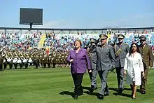 Contreras (in white) with President Michelle Bachelet in 2014.