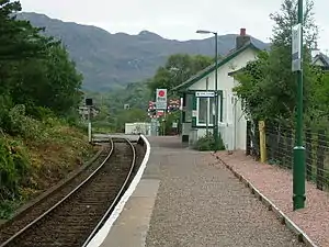 Morar railway station is a railway station serving the village of Morar in the Highland region of Scotland. This station is on the West Highland Line, between Arisaig and Mallaig, 36 miles 59 chains (59.1 km) from the former Banavie Junction, near Fort William.[3] ScotRail, who manage the station, operate all the services here.