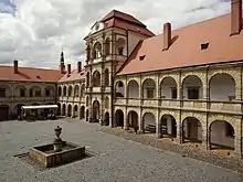 The main landmark is the Moravská Třebová Castle. The original castle from the 13th century was reconstructed in the early Renaissance style in the late 15th century. In 1611–1618 it was expanded with an arcade wing. The castle is one of the oldest Renaissance monument in the country.[2]