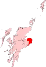 Moray shown within the Highlands and Islands electoral region and the region shown within Scotland