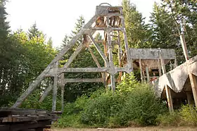 In 1972, recognized as a National Historic Site,[11] and designated a provincial historic park, the day-use park remained undeveloped in subsequent years.[12] In 2003, the Friends of Morden Mine (FOMM) organized to save the seven-storey-high headframe/tipple. After the structure continued to deteriorate behind a chain-link fence, the society was on the verge of giving up in 2015.[13]