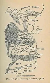 Map of Hed and its neighbors drawn by Kathy McKillip.