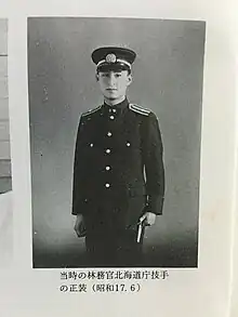 Once he graduated in 1939, he worked as a king crab inspector, but completed the training course's first type of Hokkaido Government Forestry and became one of these officers, just like his father and paternal grandfather, in 1941.[2] He then began researching the truth behind the Sankebetsu brown bear incident, for which no solid information existed, but failed to obtain sufficient information through literature.[3]