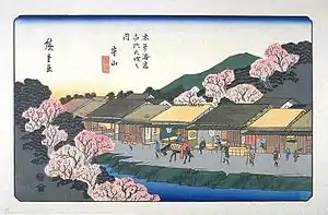 ![]() Hiroshige's print of Moriyama-juku, part of the Sixty-nine Stations of the Kiso Kaidō series | |