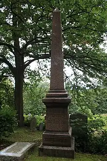 Young died on 26 February 1897 and is buried on the upper northern slopes of Woodside Cemetery in western Paisley.