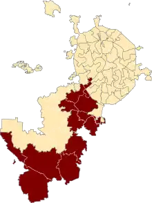 DistrictsDesyonovskoye, Filimonkovskoye, Kiyevsky, Klenovskoye, Moskovsky, Mosrentgen, parts of Prospekt Vernadskogo, Rogovskoye, Ryazanovskoye, Shachapovskoye, Shcherbinka, Sosenskoye, parts of Troparyovo-Nikulino, Voronovskoye, Voskresenskoye