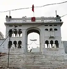 The Moula Ali dargah is located on top of the hill. It was built by Sultan Ibrahim Qutub Shah[1] and it is the only dargah dedicated to maula Ali, son-in-law of Prophet Muhammad.[6][7] Its interior is decorated with thousands of mirrors[3] and it is one of the 11 heritage sites in Hyderabad, identified by the "Heritage conservation committee" of HUDA.[8] It is well known fact that Maula Ali Hill has engraving of the hand of Ali Ibn Talib, the fourth caliphate of Islam. It is revered by millions of people around the year.