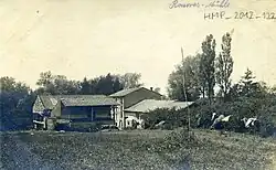 After the Revolution, the Abbey of Rosa was dismantled,[20] as for the mill and pond, were sold as national property.[27] During the 19th century, the mill lost importance with the advent of industrial gristmills, while fish farming suffered from competition with fish from the French coast.[17] In 1889, the mill pond dried up and the two adjoining ponds became swamps. The fishermen's houses surrounding the pond were dismantled. The mill was transformed into a farm and sold to a private owner in the early 20th century. Two barns, a sheepfold and a washhouse were built to meet the new needs of the occupants.[28]