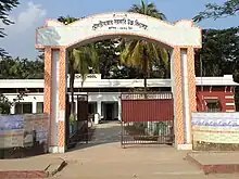 In 1930, J. R. Cunningham, Director of Public Instruction of Assam, issued a circular banning Anti-British activities, independence movement, and forced students and parents to sign undertaking declaring they would participate in those activities.[2][3] The school was burned down in protests against the circular.[2] The entrance examination center for Moulvibazar (South Sylhet mahakuma) was in Sylhet until 1938. In 1933, the school was approved as a center for entrance examination. After the end of the Bangladesh Liberation War, the school was used as a transit camp to store explosives and ammunitions left from the war.[4] On 20 December 1971, the storage at the school exploded. 25 bodies of Mukti Bahini personnel were recovered from the school but the death toll was believed to be higher.[4][5] They were buried in the playground of the school.[6] A shaheed Minar and a monument to the victims was built at the site of the explosion.[4] 20 December is observed as Moulvibazar's Shaheed Day.[4][7]