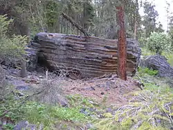 large broken columns of crystalline dacite at the east base of Mount Boucherie