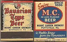 Mount Carbon Brewery matches with "Bavarian Type Beer" and "M.C. Deluxe Pilsner Beer".