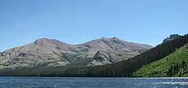 Appistoki at left and Mount Henry at right rise above Two Medicine Lake