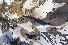 Aerial view of Mount Hood's rugged north side.