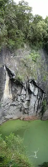 The Mount Hypipamee Crater, also known as The Crater, is a huge diatreme located south-east of Herberton on the Atherton Tableland in Far North Queensland, Australia. It is 61 metres in diameter and 82 metres deep.[1]