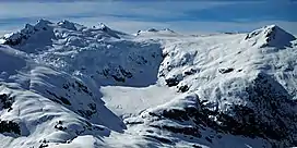 Mount Jimmy Jimmy is a 2,208-metre (7,244 ft) glaciated mountain located in the Coast Mountains in southwestern British Columbia, Canada. It is situated 32 kilometres (20 mi) northwest of Squamish, and 10 km (6 mi) northwest of Ossa Mountain, which is its nearest higher peak. Mt. Jimmy Jimmy is the highest point of the Tzoonie-Clowhom Divide.[2] Precipitation runoff from the peak and meltwater from its immense glaciers drains into tributaries of the Squamish River and Clowhom River. The mountain was named for Chief Jimmy Jimmy (native name Swahsh), a leader of the Squamish Nation, who had traplines in the vicinity of the mountain and was a skilled paddler.[1][3][4] The mountain's name was officially adopted on June 6, 1957, by the Geographical Names Board of Canada.[5]
