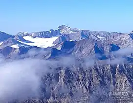 Mount Joffre is a mountain located on the Continental Divide, in Peter Lougheed Provincial Park, Alberta, and Elk Lakes and Height of the Rockies Provincial Parks in British Columbia.[3] The mountain was named in 1918 by the Interprovincial Boundary Survey after Marshal Joseph Joffre, commander-in-chief of the French Army during World War I.[1]